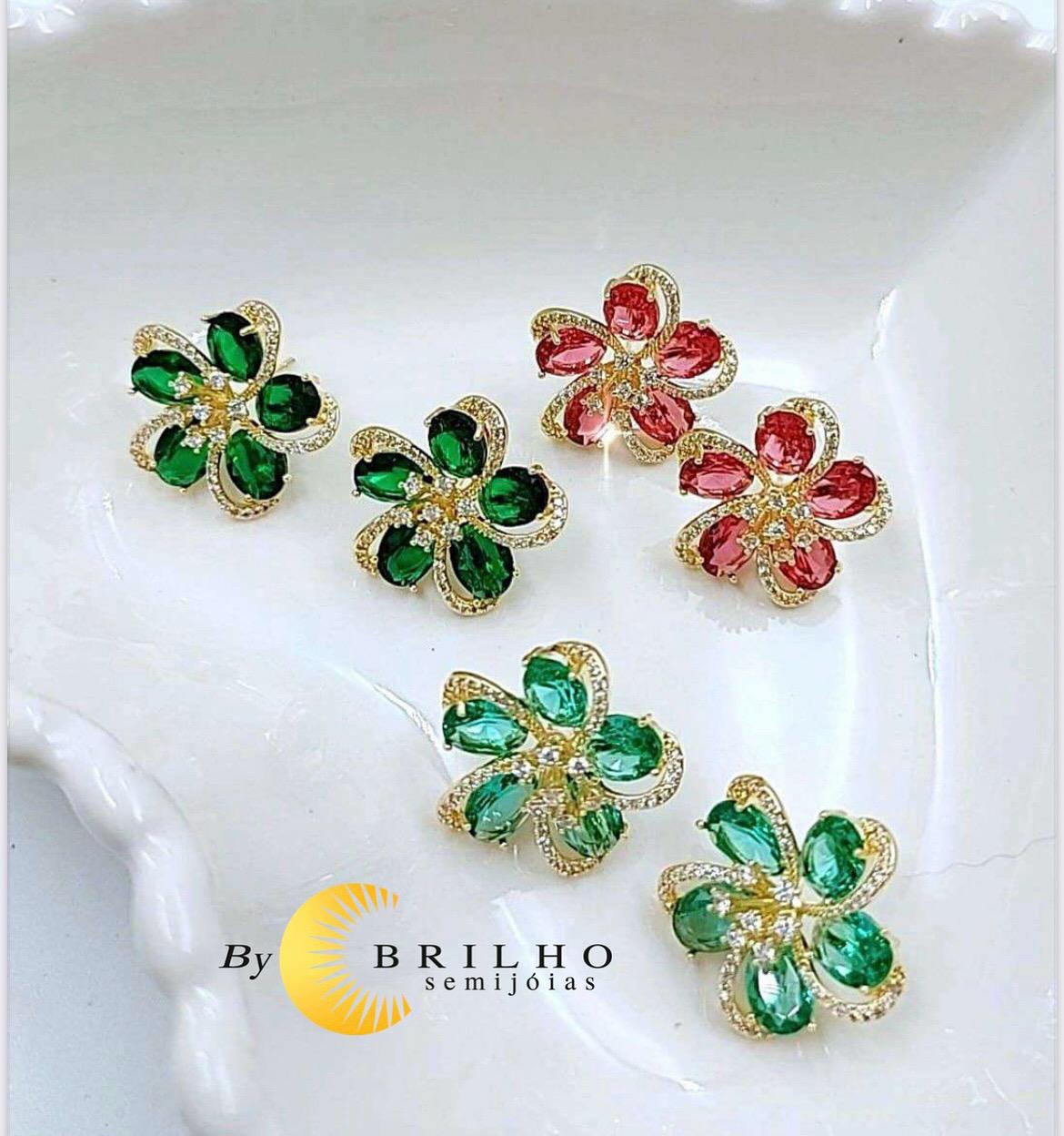 Brinco de cristal esmeralda com zircônia dourado (10204)